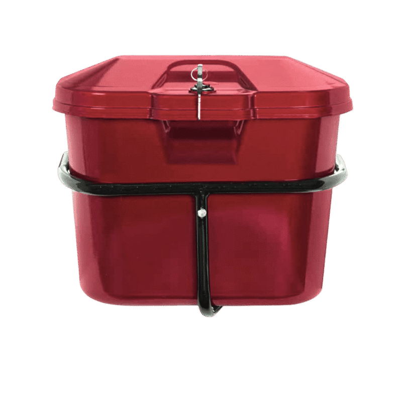 Safari Box is a motorcycle side luggage box, which is sturdy, has a six lever tamper-proof lock system, payload of 3 kg and storage capacity of 10 litres. Our safari Box has triple reflectors with chrome lining and easy replaceable top lid available in various colour options
