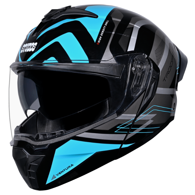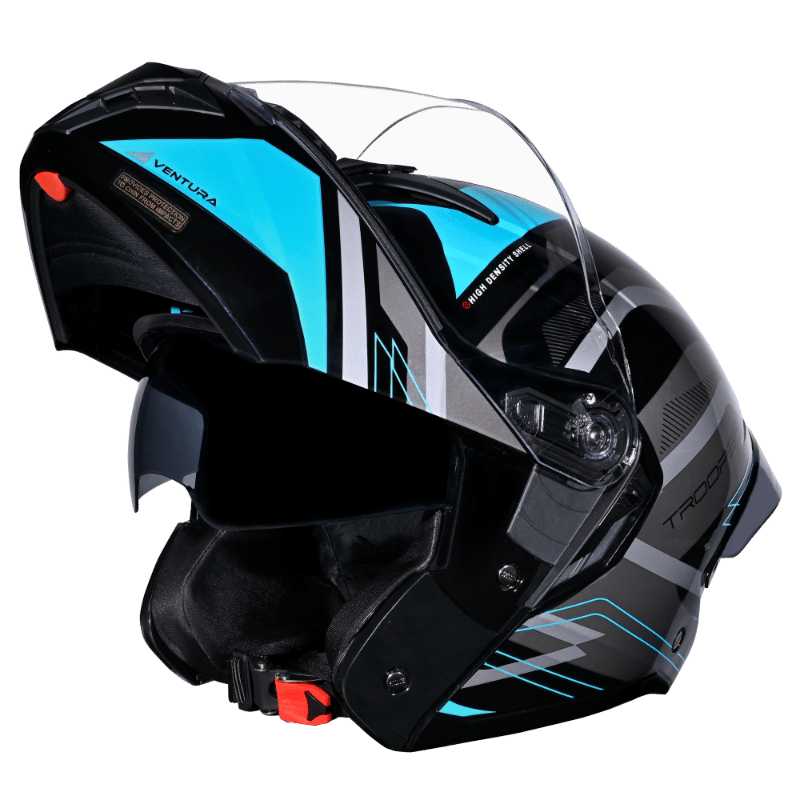 Discover the perfect blend of safety and style with the Trooper D3 Venture Decor. This innovative flip-up full-face helmet combines exceptional convenience with superior protection. Featuring a quick-release visor, ISI and DOT certifications, and a high-impact-resistant outer shell, it offers unmatched durability. The rust-proof stainless-steel buckle adds reliability, while the