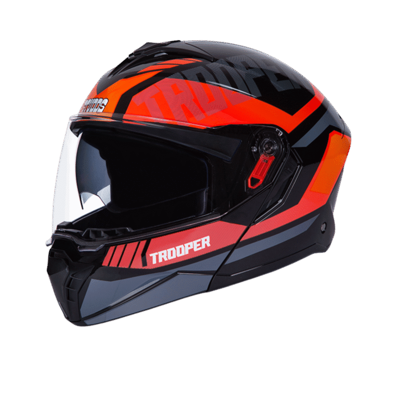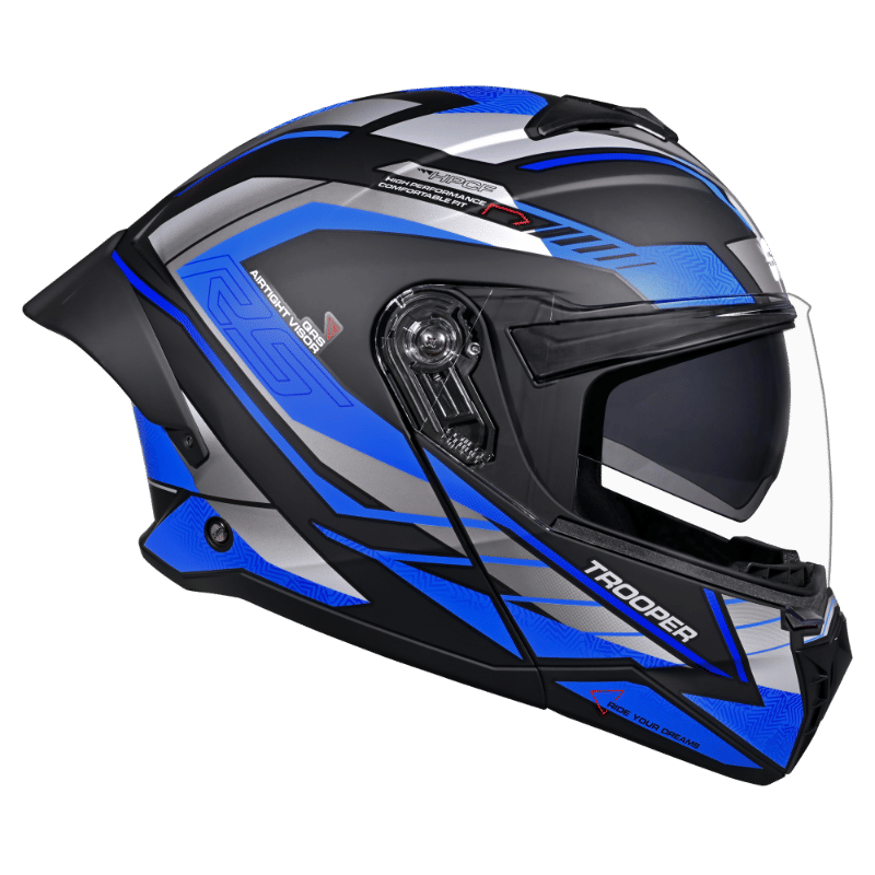 Trooper DV is a flip-up full-face helmet with product features like high impact outer shell and regulated density EPS, hypoallergenic liner, quick release visor and quick release chin strap. Trooper DV comes in various sizes and colour options.