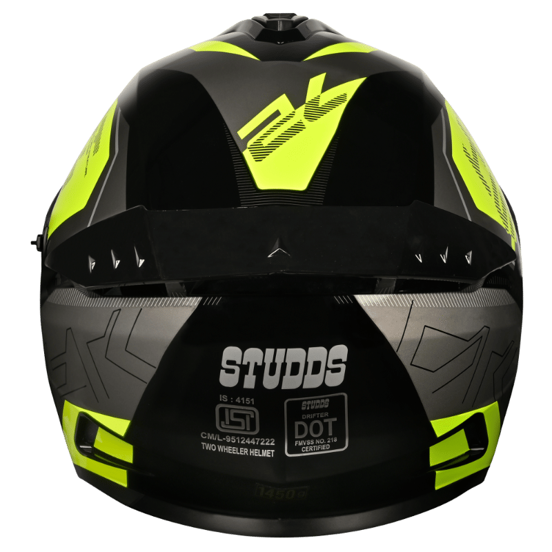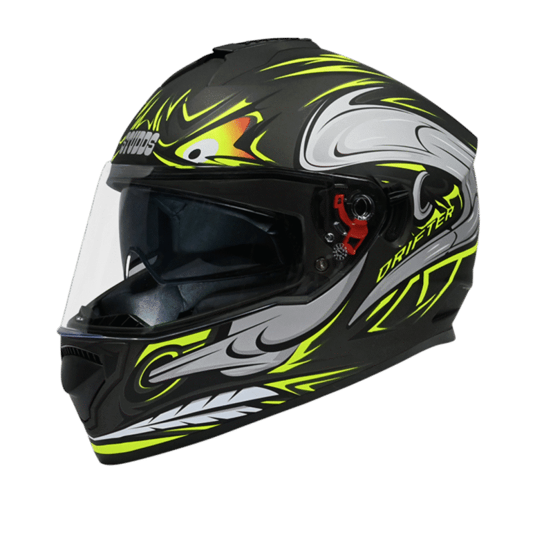 Presenting the STUDDS Drifter D5 Fiker full-face helmet – a blend of safety and style. With ISI and DOT certifications, it ensures top-notch protection on the road. Enjoy optimal airflow with its dynamic ventilation system and hypoallergenic liner for added comfort. Featuring a scratch-resistant visor and dual visor setup, visibility