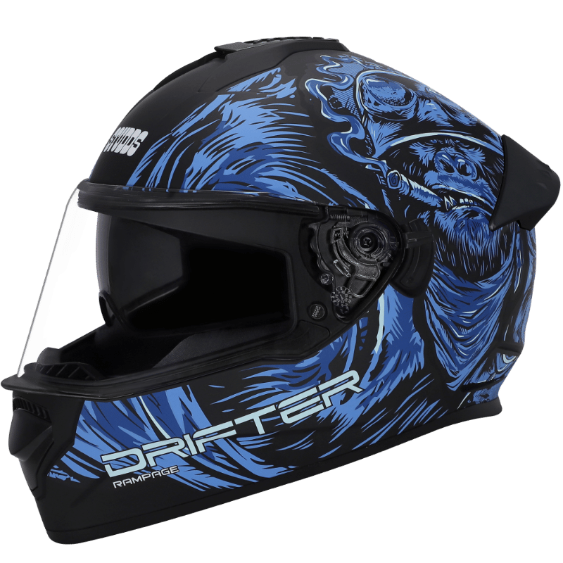 Drifter is a full-face helmet with a high-impact outer shell along with product features like an aerodynamic design, regulated density EPS, dynamic ventilation system with chin and top air vents and hot air exhausts, hypoallergenic and replaceable liner, removable and replaceable lower trim, silicone-coated dual visor with quick release chin