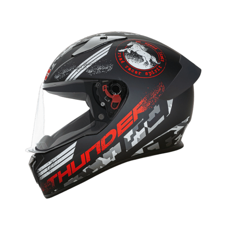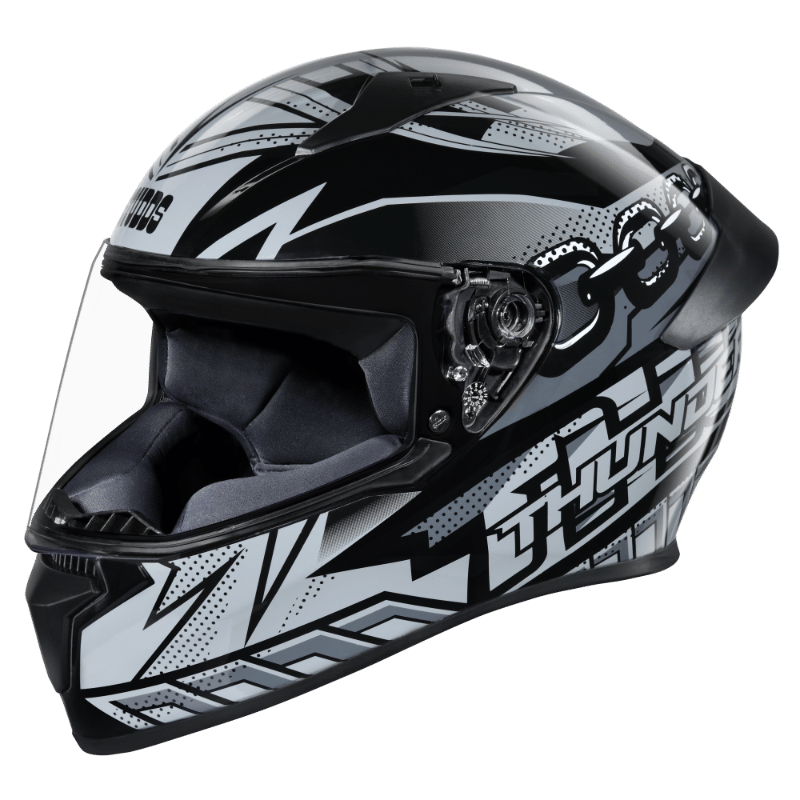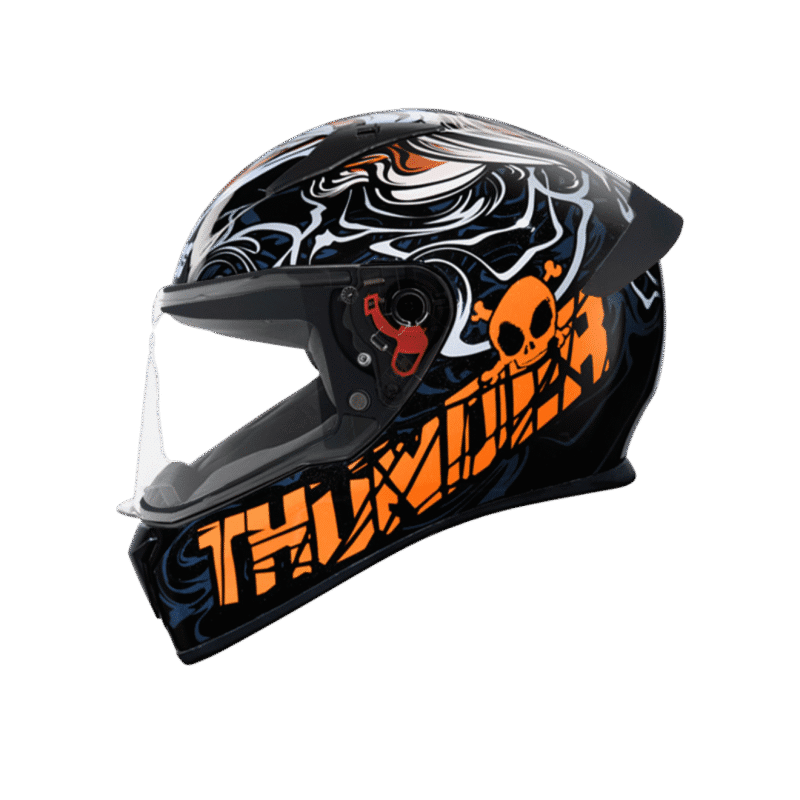 Thunder D6 Decor is an aerodynamic designed full-face helmet with spoiler and product features like high impact outer shell and regulated density EPS, dynamic ventilation system with chin and top air vents and hot air exhausts at the back, hypoallergenic and replaceable liner, quick release visor and chin strap. Thunder D6 Decor