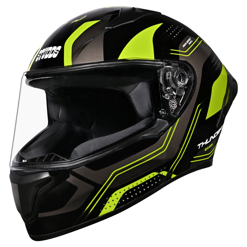 The Studds Thunder D11 Full Face Helmet is a steadfast and fashionable selection for riders. Featuring an aerodynamic design, robust high-impact ABS shell, and a convenient quick-release visor, it delivers top-notch protection. Stay cool with the efficient ventilation system, and revel in comfort with the hypoallergenic liner. ISI standards compliance