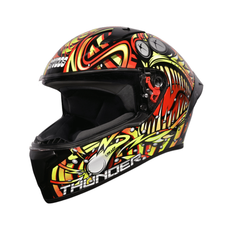 The Thunder D9 Flash Decor helmet combines top-tier safety with advanced comfort features, making it an ideal choice for riders who value both protection and style. Engineered with a high-impact resistant outer shell, this helmet provides robust protection on the road. The dynamic ventilation system ensures optimum airflow, keeping the rider cool and comfortable during