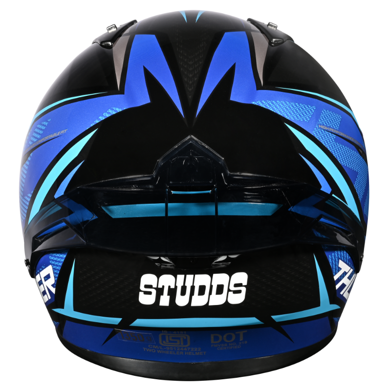 Introducing the Thunder D1 Lightvolt Full Face Helmet with Spoiler. This premium helmet boasts ISI and DOT certifications, ensuring superior safety standards. Equipped with a dynamic ventilation system, it offers optimal airflow for a comfortable ride. The helmet features a rust-proof stainless steel buckle and regulated density EPS for enhanced