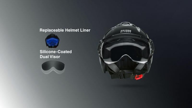 ![]() | Clear Vision with Comfortable Interior Designed for convenience and comfort, STUDDS Downtown offers enhanced visibility along with an easy-to-maintain interior. · Silicon-coated dual visor – improves durability and clarity while allowing smooth transition between clear and sun protection in changing light conditions. · Replaceable liner – allows easy replacement to maintain hygiene, comfort, and long-term freshness. |