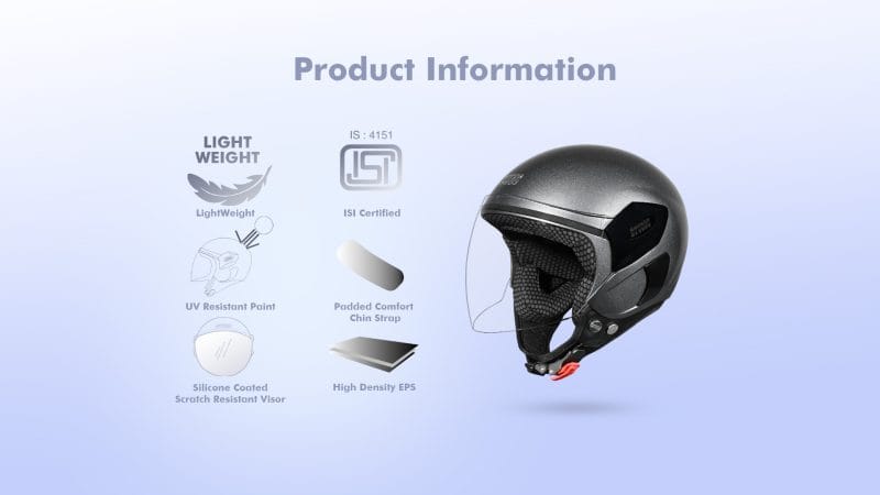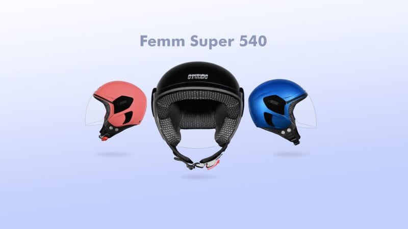 Lightweight Safety with Everyday Comfort The Femm Super 540 Open Face Helmet is designed for comfortable daily riding, combining a lightweight build with certified protection and durable finishing. · Lightweight design – reduces neck strain and keeps rides comfortable during city commutes and longer use. · ISI certified – ensures compliance with required safety standards for dependable everyday protection. · UV-resistant paint – helps prevent color fading and maintains the helmet’s finish under regular sun exposure. · Padded comfort chin strap – provides a soft, secure fit that minimizes pressure under the chin. · Scratch-resistant visor – maintains clear visibility by resisting everyday wear and surface scratches. · High-density EPS – absorbs and disperses impact energy efficiently to reduce force transferred to the head. | ![]() |