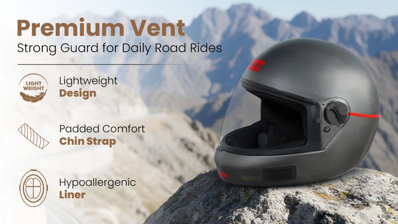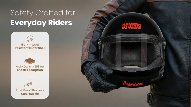 For those who believe every ride deserves safety and style, the Studds CHROME ELITE Full Face Helmet is built to make daily commuting effortless. Designed for India’s busy riders, this helmet offers the perfect blend of lightweight comfort, dependable protection, and timeless Studds quality. Whether you’re heading to work, college, or a quick spin around town, Chrome keeps you safe, cool, and confident on every road.