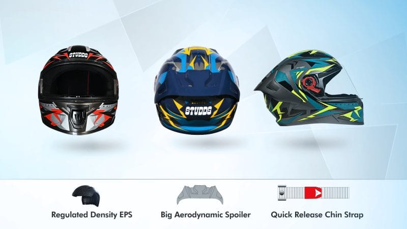 Aerodynamically designed sporty spoiler enhances helmet stability, reduces wind drag, and provides a stylish, aggressive look.