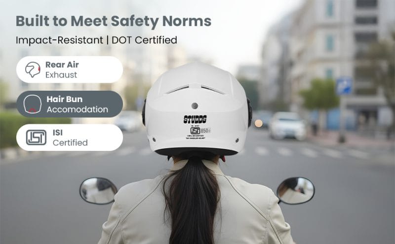 Safety Designed to Meet Riding Needs The Urban Dame Helmet blends airflow, rider-specific comfort, and certified safety to support confident everyday riding. · Rear air exhaust – releases warm air effectively to maintain a comfortable interior temperature. · Hair bun accommodation – provides added comfort and fit convenience for riders with longer hair. · ISI certified – confirms compliance with required safety standards for dependable protection. | ![]() |