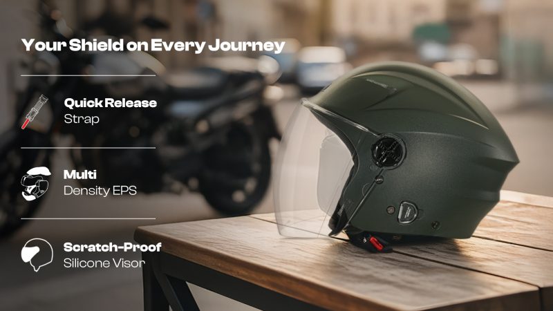 ![]() | Your Reliable Shield on Every Ride The Vogue Eco Open Face Helmet is designed to offer everyday protection with quick usability and dependable impact management, making it ideal for regular city riding. · Quick-release chin strap – allows fast, secure fastening and effortless helmet removal during daily use. · Multi-density EPS – manages impact energy across layers to reduce force transferred to the rider’s head. · Scratch-proof visor – maintains clear visibility by resisting everyday scratches and surface wear. |